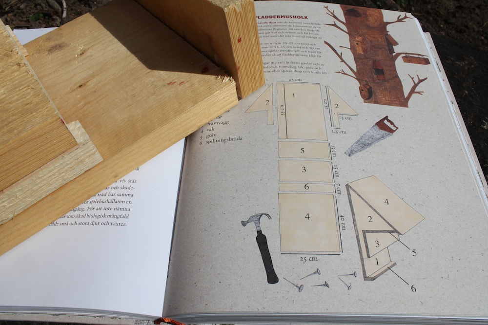 Vi har pratat länge om att göra en fågelholk, Bruno och jag. Men när vi såg ritningen på fladdermusholken blev 6-åringen eld och lågor. Coolheetsfaktorn var ännu högre på den.